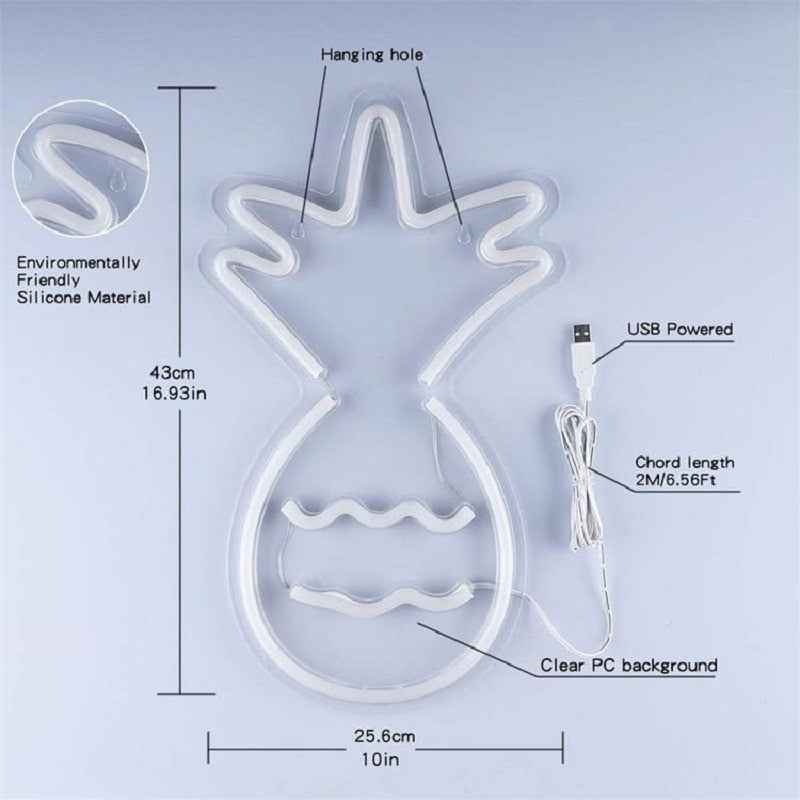 Light up your space with our pineapple neon wall art. Its magical glow is simply irresistible and attractive. Use this as an accent item to your bar or kitchen and create a space that is reminiscent of the tropics. All of our wall lights emit a soft glow that paints your wall far beyond the light’s edges, creating a calming gradient and its own unique vibe wherever it’s placed.